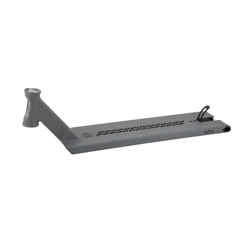 The Extrusion will now be 6” and 6.5” with a perforated foot plate to reduce weight while also being easy to griptape over so that the rider is not limited by a large cut out through the top.